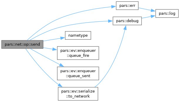 References pars::debug(), pars::err(), nametype(), pars::net, pars::net::out, pars::ev::enqueuer::queue_fire(), pars::ev::enqueuer::queue_sent(), SL, and pars::ev::serialize::to_network().